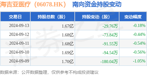 本站音讯,9月13日南向资金减执29.76万股海吉亚医疗(06078.HK)。近5个往还日中,获南向资金减执的有5天九游体育app(中国)官方网站,累计净减执469.73万股。近20个往还日中,获南向资金减执的有13天,累计净减执663.14万股。弃世现在,南向资金执有海吉亚医疗(06078.HK)1.67亿股,占公司已刊行平日股的26.48%。