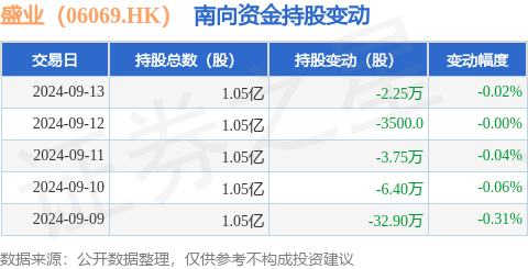 本站讯息,9月13日南向资金减抓2.25万股盛业(06069.HK)。近5个往还日中,获南向资金减抓的有5天,累计净减抓45.65万股。近20个往还日中,获南向资金减抓的有14天,累计净减抓56.9万股。实现当今,南向资金抓有盛业(06069.HK)1.05亿股,占公司已刊行鄙俚股的10.58%。