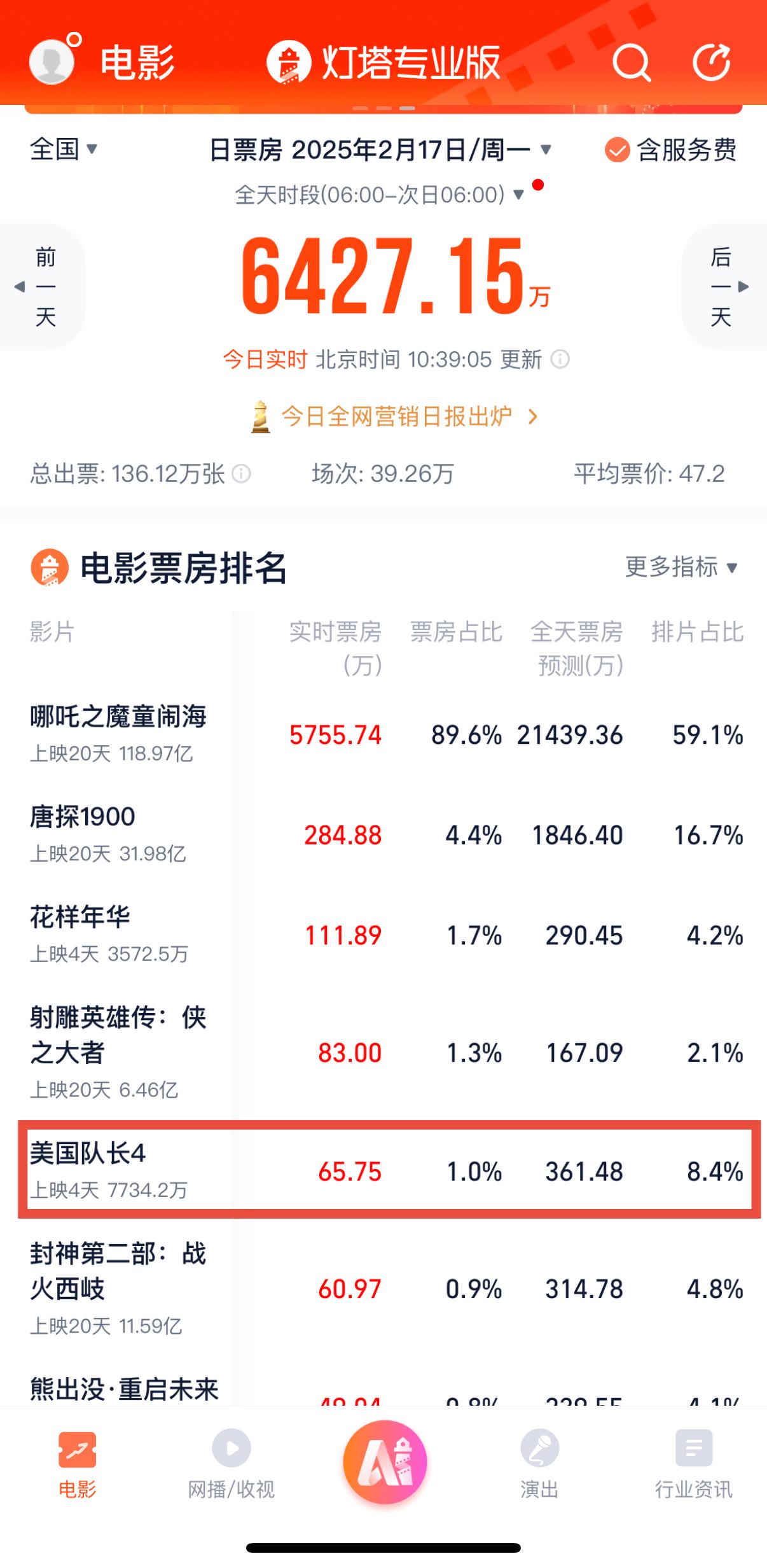 2月14日,漫威影业出品的《好意思国队长4》在中好意思同步上映,票房和口碑均远低预期。据灯塔专科版数据领略,该片在中国上映首日票房仅为3836.2万元,远低于前作《好意思国队长3》首日1.8亿元的票房得益。